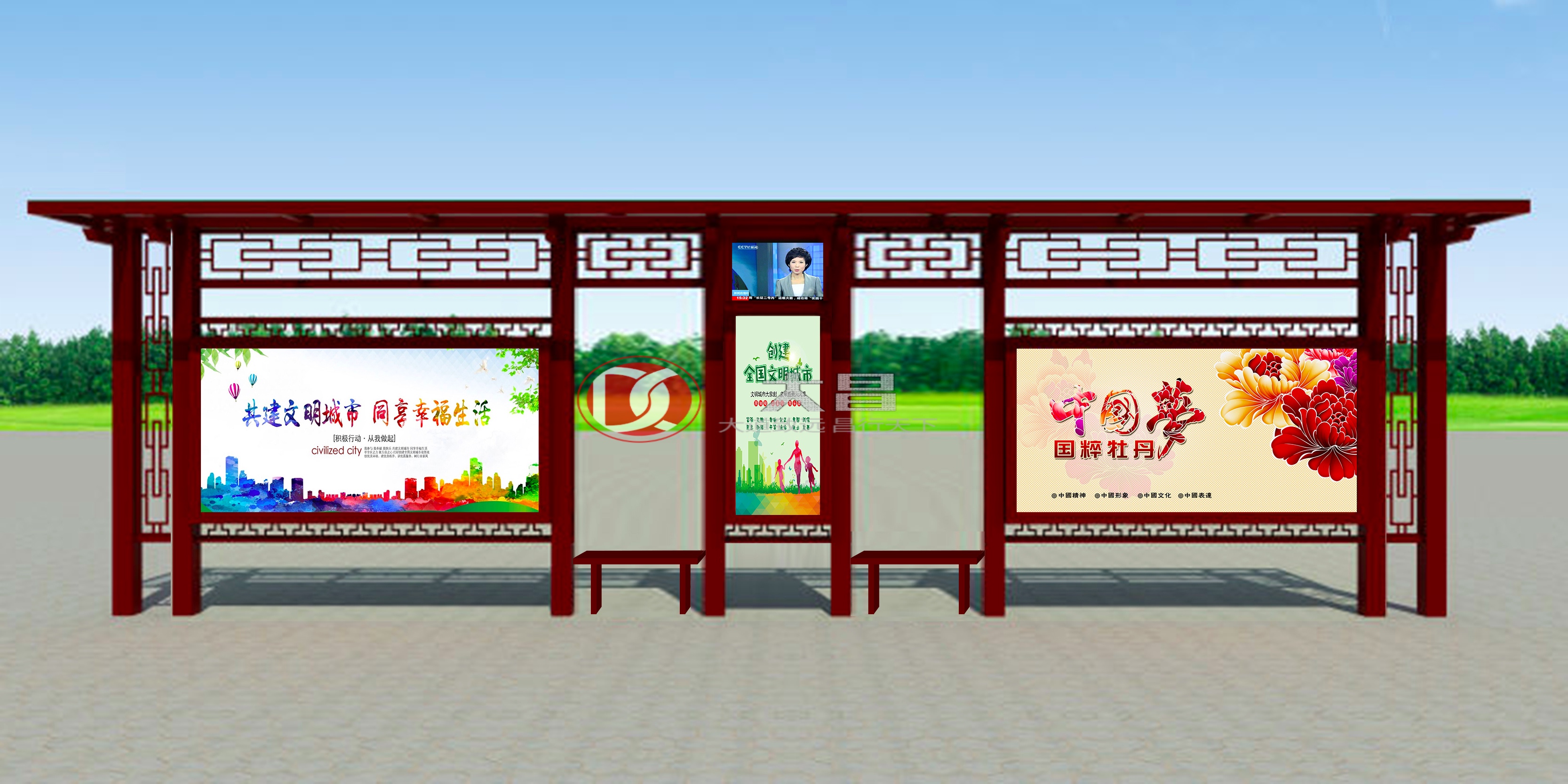延安,是天下第一陵--中華民族始祖黃帝的陵寢:黃帝陵所在地,是中國革命的落腳點和出發點,是中國革命的圣地。我司此次生產制作的這款延安雕花候車亭融入了“延安精神”的元素,采用了延安這個作為紅色革命圣地特有的顏色,無形中透露出寶貴的延安精神。同時,候車亭燈箱整體的設計結構也恰到好處地體現出陜北人民樸實憨厚的性格。