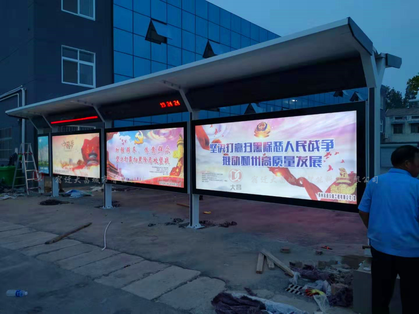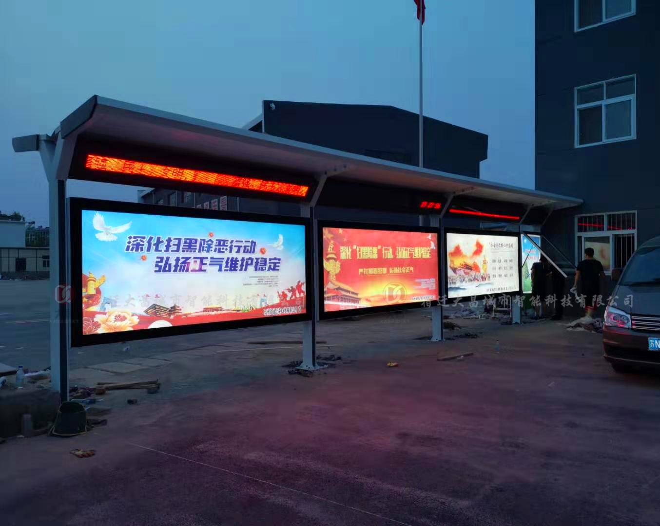 以下是江蘇邳州公交站臺候車亭安裝調試現場實景照片,請欣賞: