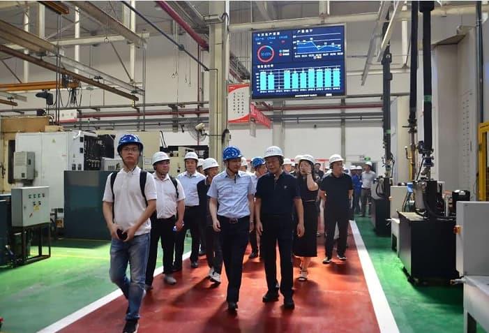 29日上午,考察團來到了合肥合鍛智能制造有限公司,企業負責人帶領考察團參觀了企業展廳、系列產品、工業互聯網平臺和生產現場。企業負責人向考察團介紹了企業的發展歷程以及合鍛智能圍繞輕量化成型、航空航天制造裝備、視覺工業、智能互聯、全球化布局等戰略方向的積極拓展。參觀過程中,大家不時在企業產品前停留,詢問設備技術含量、市場開拓情況,對合鍛智能產業布局、產品創新頻頻點贊。