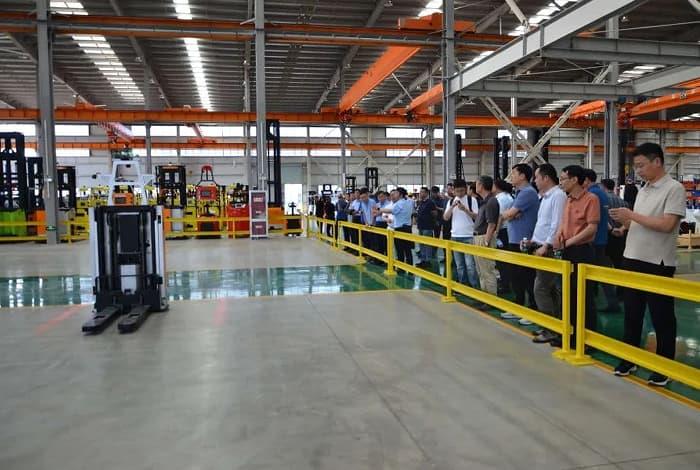 29日下午,考察團走進了安徽合力股份有限公司,受到了公司負責人的熱情接待。安徽合力主營業務為工業車輛、工程機械及關鍵零部件的研發、制造和銷售。目前是我國規模最大、產業最完整、綜合實力與經濟效益最好的工業車輛研發、制造和銷售基地,自1991年以來,主要經濟指標連續保持全國行業第一,并已躋身世界工業車輛行業七強。考察團首先參觀了公司展廳,對公司的發展歷史、組織架構、產業布局企業文化建設、發展戰略有了全面的了解,隨后在企業負責人的陪同下參觀了合力叉車的生產現場,通過近距離的參觀,大家深刻感受到合力公司通過引入人工智能,打造合力HOS運營體系,實現了管理革命,充分體現了作為知名企業進行市場變革、開展市場化競爭的決心。參觀完合力叉車生產基地后,考察團又來到了合力智能物流產業園宇鋒智能廠區。近年來,合力深耕智能物流產業,安徽合力通過現金收購股權的方式投資并購宇鋒智能,加速推動由單一設備供應商向智能物流集成商的轉型升級,不斷開辟新領域,創造新模式,培育新的增長點。