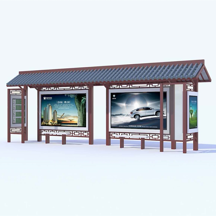 旅游景區(qū)也可以融入一些有中式文化元素,比如在屋檐及斗拱,就可以讓候車亭看上去有不失莊重同時(shí)也可以兼顧現(xiàn)代感,在為市民和游客提供乘車候車便利的同時(shí),也對(duì)宣傳景點(diǎn)景色和城市文明及宣傳景區(qū)景點(diǎn)起到不可忽視的作用。